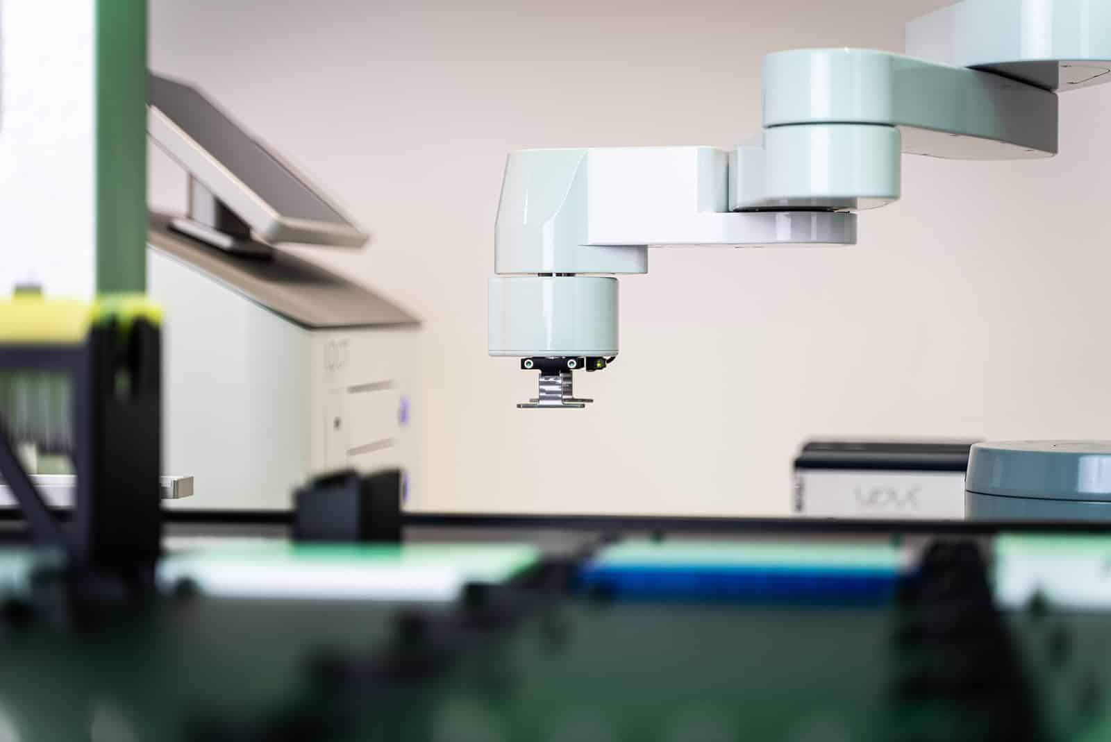 The KX-2 is the robotic arm that connects all the different individual modules in the G.STATION. The KX-2 Robotic Arm can seamlessly and quickly move plates between the different devices. With Dispendix’s cloud-based software, the KX-2 can communicate with the different modules and connect them, allowing for a smooth integration in custom workflows and protocols.