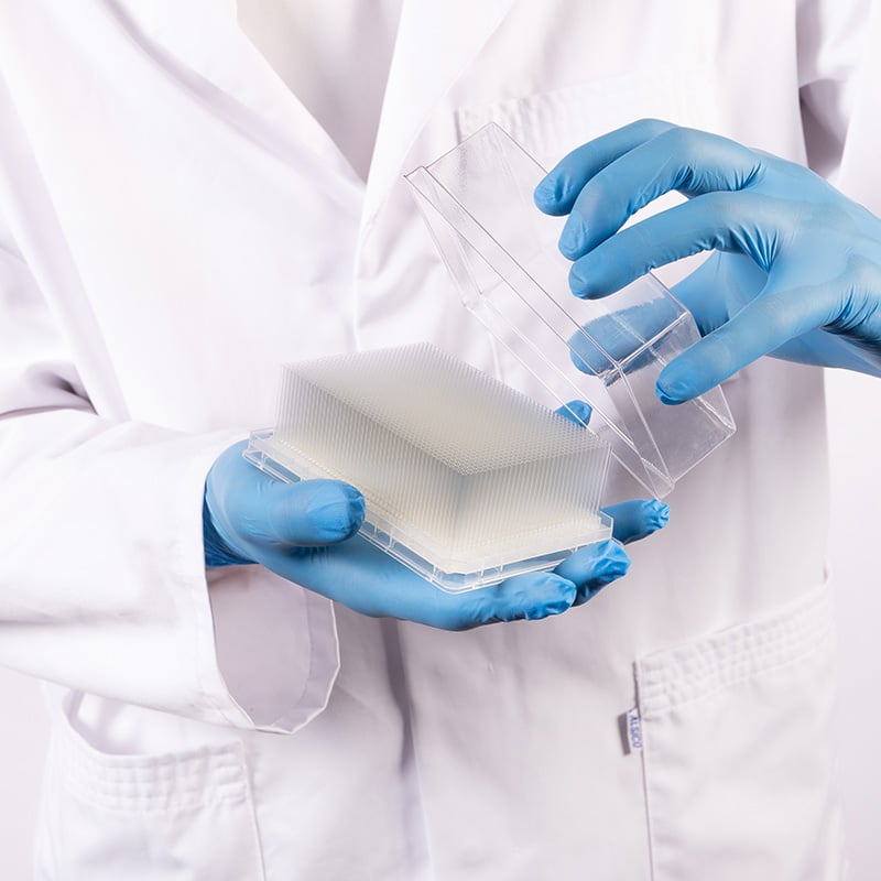 384-well plate with glass inserts for high-throughput assays. Precise, clean, and automation-ready.
