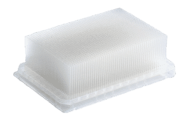 The base plate is made from durable polypropylene (PP), offering superior chemical resistance, low binding characteristics, and excellent dimensional stability, even under thermal stress. Ideal for labs seeking a balance of throughput and chemical compatibility.
