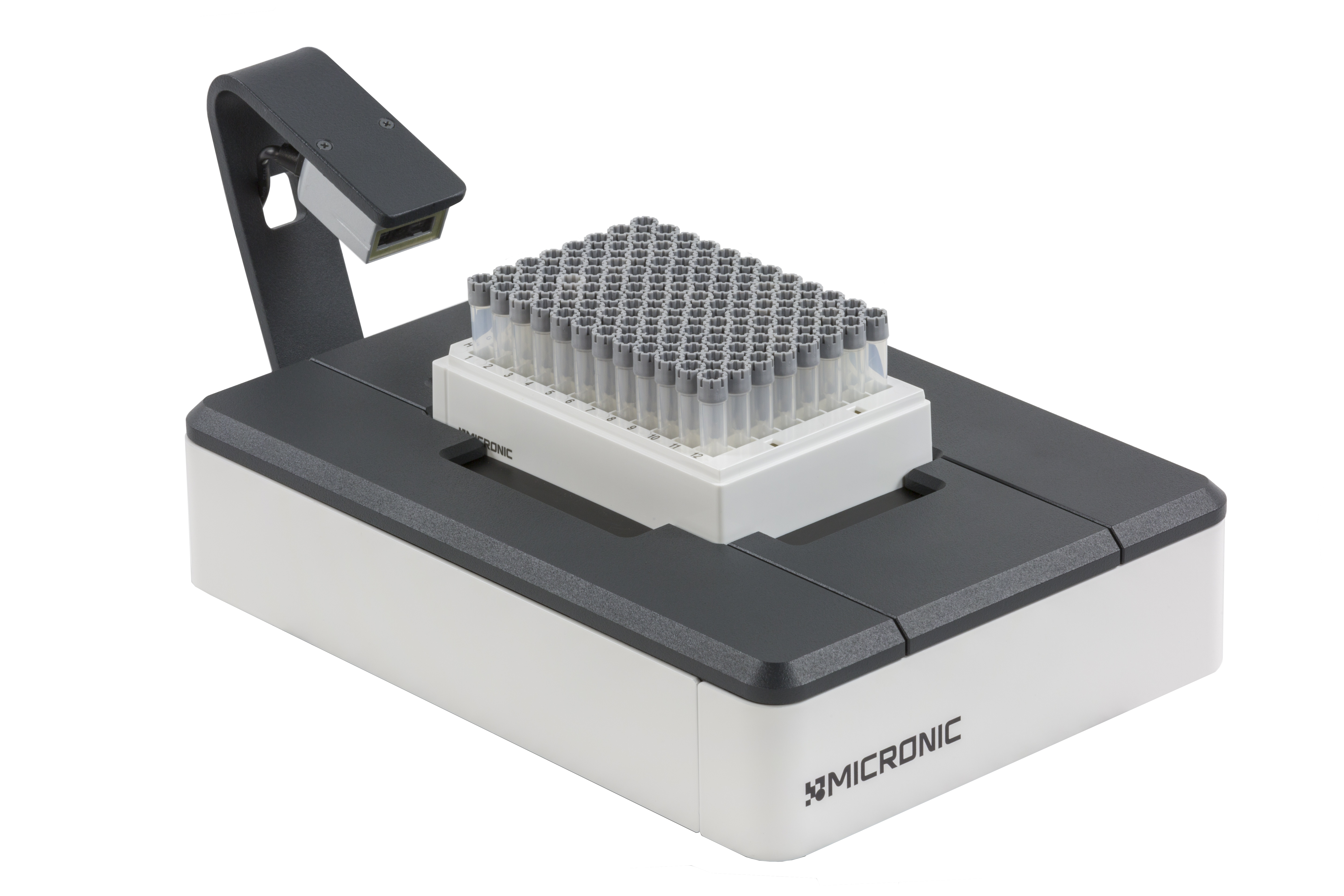 The Micronic Side Barcode Reader is a small, bench top solution for scanning 1D barcodes on racks.
