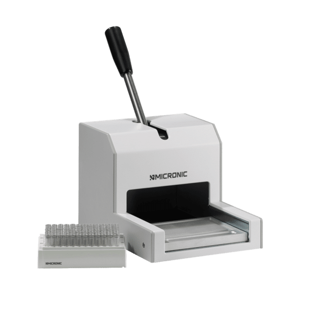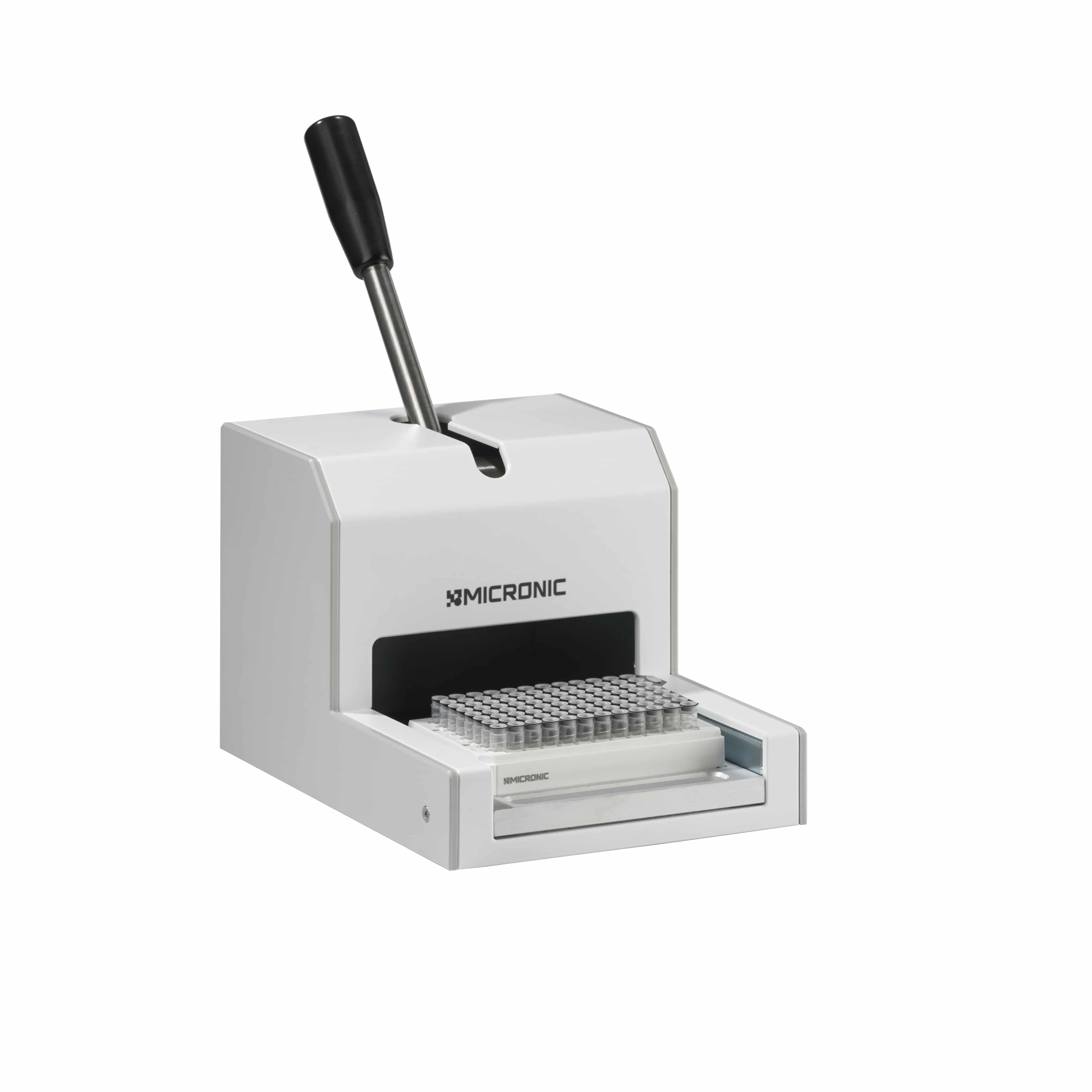 The Micronic Push Cap Capper CP400 is a cost effective way to seal 96 push cap tubes at once. Built to meet the varying needs of different users, the Push Cap Capper CP400 can seal full or partially full racks with the complete range of Micronic TPE or EVA style capmats, capbands and capclusters.