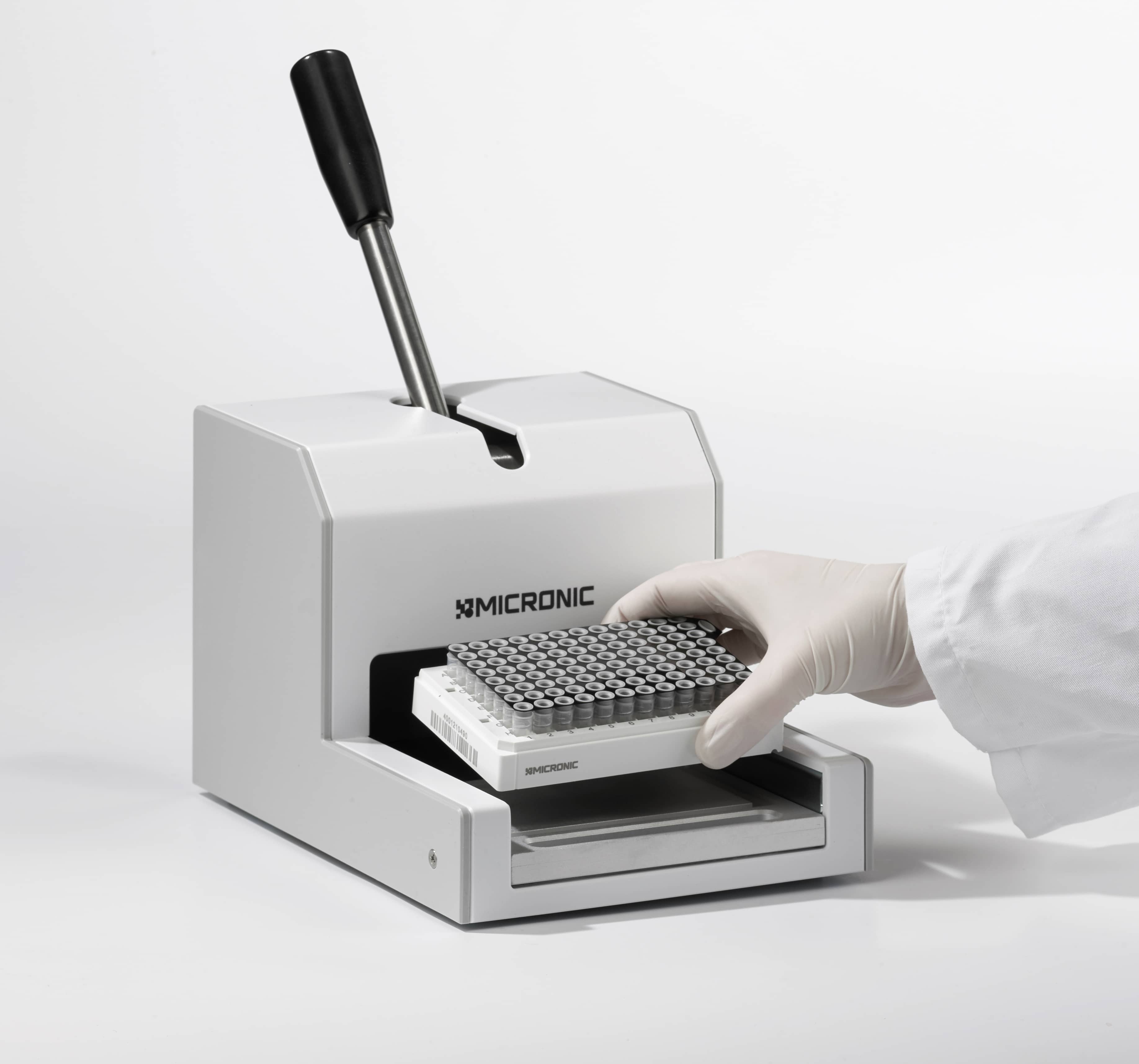 The Micronic Screw Cap Recapper CS500 is developed in conjunction with several leading laboratories. The handheld device offers users the ability to cap, decap or recap a row of 8 tubes in less than 5 seconds - 10 times faster than by hand!