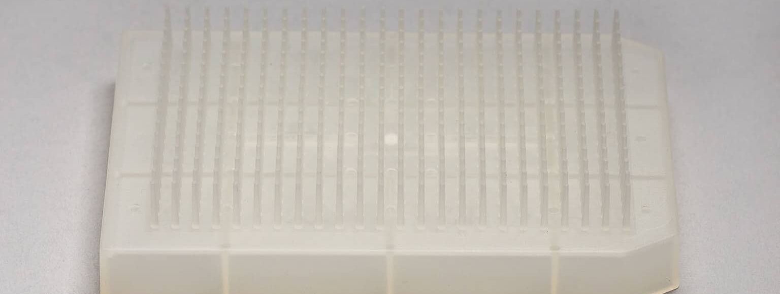 This disposable pin replicator has 96 pins. Available in long (25mm) and short (12 mm) pins. With these pin replicators, you don't have to worry about cross-contamination that occurs when using the regular metal replicators.